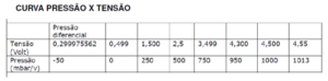 figura 3 – Curva do sensor de pressão – Tensão x pressão