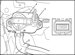 O sensor recebe uma alimentação de 5V e massa provenientes da central e envia um sinal de tensão variável de acordo com a pressão.